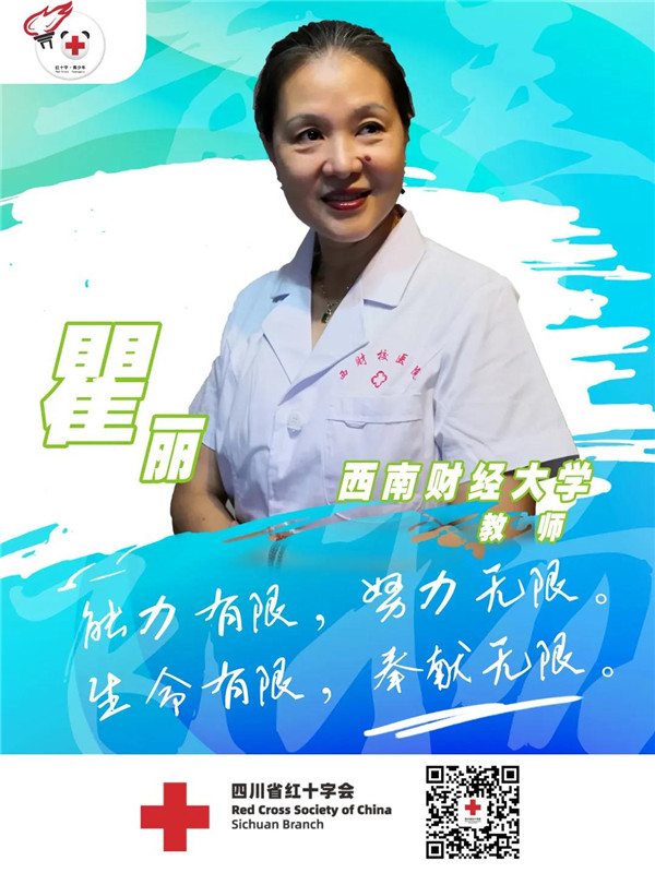 作为西南财经大学校红十字会办公室主任,加入红十字会的十八年以来,瞿丽致力于在高校中传播红十字精神,坚持将“人道、博爱、奉献”的红十字精神传播与“文明、和谐、友善”等社会主义核心价值观培育相结合。她积极指导、探索红十字特色活动,逐渐形成了具有鲜明特色的艾滋病防控宣传教育、防灾减灾应急救护知识普及、无偿献血进学校、关老爱幼志愿服务四大品牌活动。