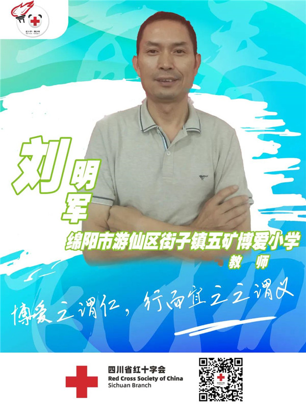 刘明军担任游仙区街子镇五矿博爱小学校长期间,狠抓学校红十字会工作,红十字青少年运动开展得有声有色。自2015年9月上挂担任绵阳市游仙区教体局安全股副股长以来,对该区域学校红十字会工作尽心尽力。他以创建“平安和谐校园”为目标,扎实做好学校安全管理工作和红十字会工作,有力地维护了全区中小学校园的平安和谐和安全稳定。