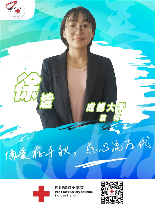 作为成都大学红十字会的指导教师,徐谧老师常常主动与学生沟通交流,积极与上级组织协商合作,和学生骨干成员一起推动成都大学红十字会的发展。在她的指导下,成都大学红十字会积极参与校内外志愿服务活动,在校内开展应急救护培训,每年帮助100余名学生通过应急救护证考试,提升青年学生求生技能;每年组织开展暑期社会实践活动,深入凉山、简阳、大邑等地的贫困县,通过支教和宣讲,丰富当地儿童暑期生活,协助当地政府加强防艾禁毒教育。