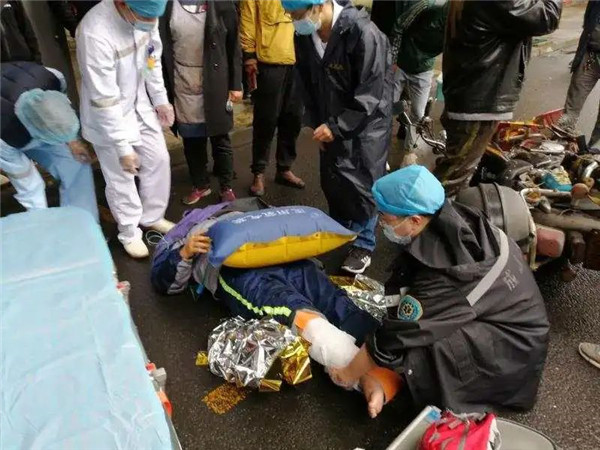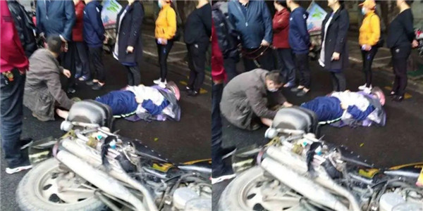 2020年9月27日8:30分左右,小雨。成都市红十字救护培训师资何健在上班途中,偶遇车祸现场,一位女士躺在地上,情况危急。作为一名红十字应急救护师资,何健立即上前支援。