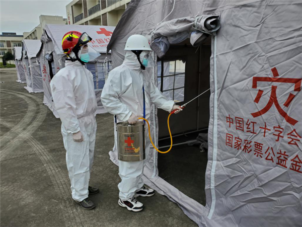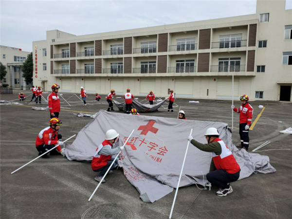 10月31日-11月1日,省红十字赈济救援队举行冬季演练。演练背景和科目为在疫情防控期间,某地发生6.0级地震灾害,赈济救援队开展营地建设、疫情防控和救灾物资发放工作。