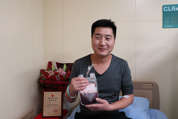 小朱边采集边告诉我们,等待了11年,今年8月初,接到了四川红会工作人员的电话,说他和一名血液病患者初配成功了,询问他是否愿意捐献造血干细胞救治那名患者。小朱说,当时加入中华骨髓库就了解过造血干细胞捐献的流程,所以工作人员问到就爽快地答应了。因为他觉得,捐献造血干细胞救人一命这样的事可能在人的一生中一次都不会遇到,如果遇到了,就要尽己所能去帮助别人。8月中旬,因为患者病情比较严重,采集时间提前了,需要高分、体检一起做。当四川红会的工作人员再次打电话征询小朱意愿时,他表示既然决定了帮助那名患者,就要帮到底。同时,小朱要捐献造血干细胞的事情也得到了父母、妻子和姐姐的理解和支持。