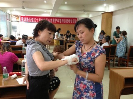 为进一步做好党和政府人道领域助手作用,弘扬“人道、博爱、奉献”红十字精神,促进城市文明进步、社会和谐安定,结合“实现伟大中国梦、建设美丽繁荣和谐四川”主题教育活动,成华区红十字会积极开展社区应急救护学雷锋志愿者培训活动。