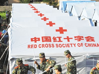 地震发生后,中国红十字会第一时间向灾区调拨了包括救灾帐篷、夹克衫、棉被、家庭包在内的救灾物资。