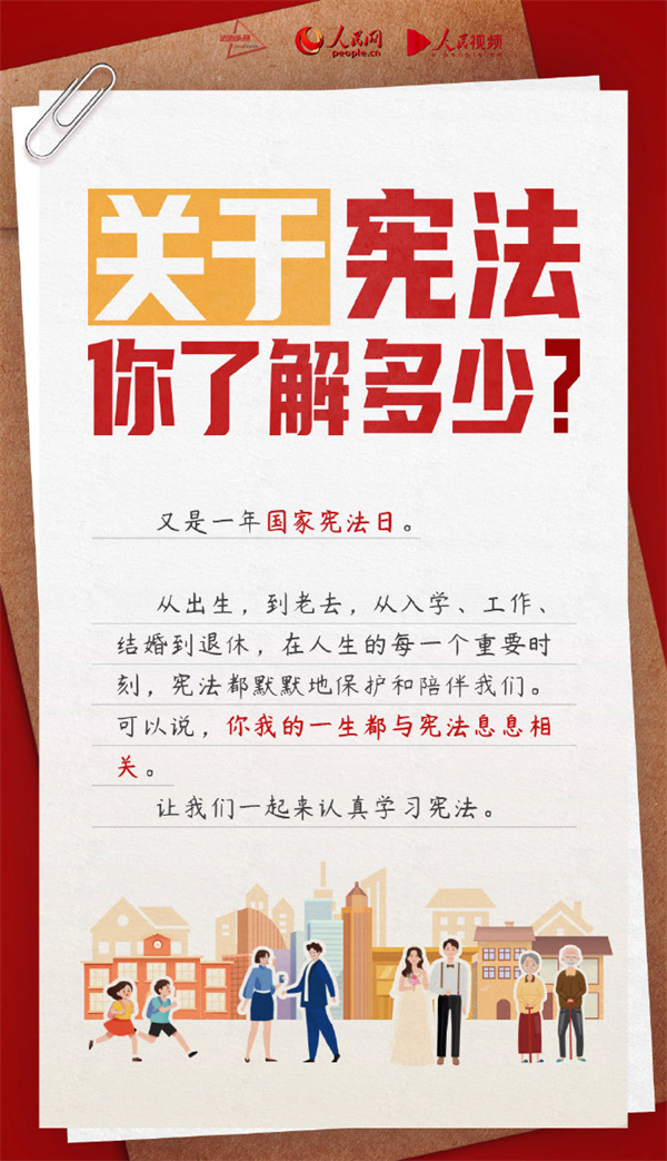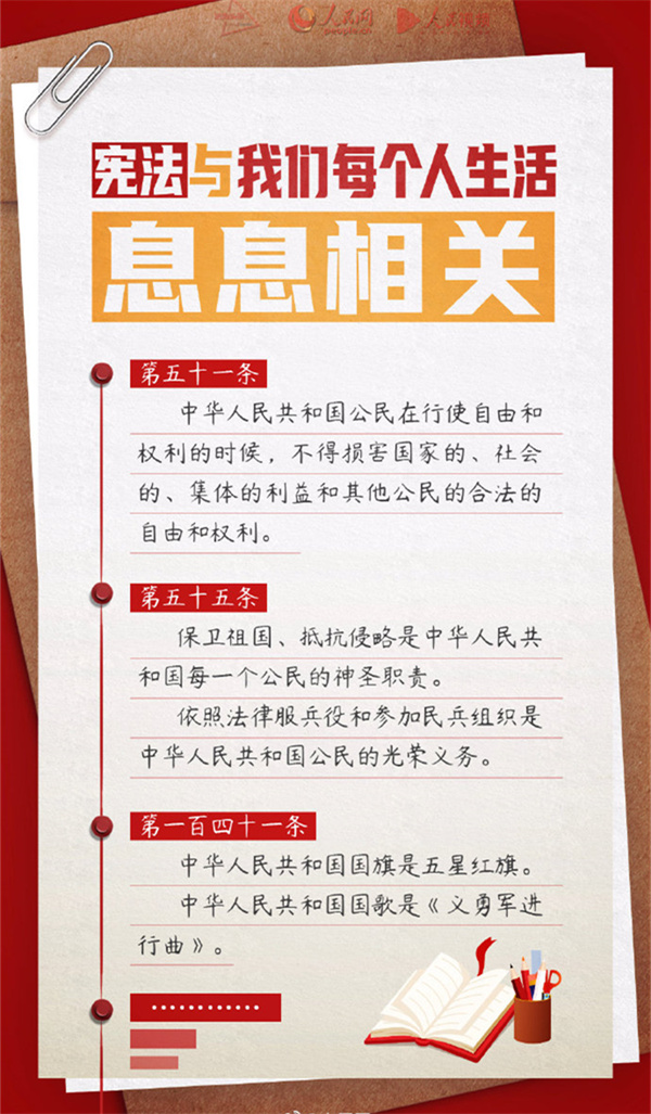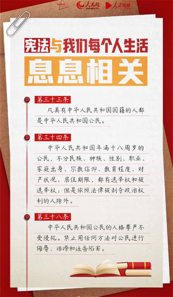 从出生,到老去,从入学、工作、结婚到退休,在人生的每一个重要时刻,宪法都默默地保护和陪伴我们。可以说,你我的一生都与宪法息息相关。学习宪法,尊崇宪法,维护宪法。