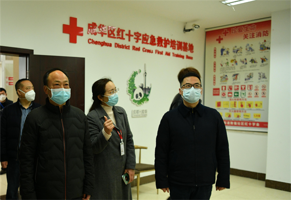1月10日,四川省红十字会党组书记、常务副会长张涛,成都市红十字会党组书记、常务副会长陈超儒一行12人赴成华区,以实地考察和座谈会的形式开展工作调研。区委常委、区总工会主席、龙潭工业机器人党工委书记邓旭陪同。