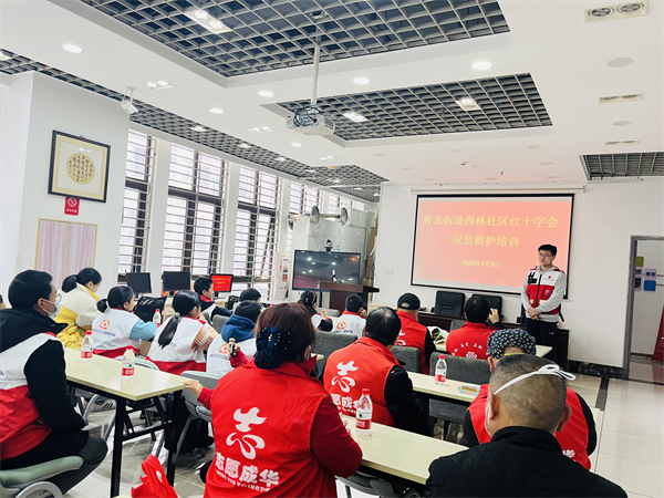 2月9日,为青龙街道西林社区居民群众、志愿者及青少年开展红十字应急救护普及培训,讲解了心肺复苏、创伤包扎、气道异物梗阻等意外事件发生时的正确处理方法。