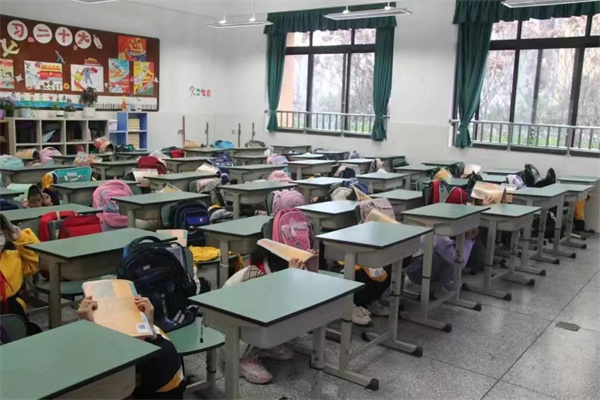 9点30整,演练在刺耳的地震警报声中按照应急预案正式开始。教室内的学生迅速将身体卧倒或蹲下,双手抱头就近躲到桌子下或墙角,以保护身体不被砸伤。一分钟后,师生按照预定的路线有序疏散。同时为了确保演练安全,学校结合演练和实际情况,在各楼层、各集合点及关键部位安排了相应工作人员,进行现场指挥疏导。并在指定安全区域清点人数,确保全员按预案疏散到指定位置。