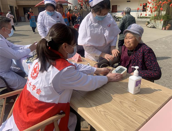 3月8日,巡诊队联合成都启阳颐养中心开展以“关爱老人送健康,爱心义诊暖人心”为主题的健康教育宣传活动。活动现场,红十字志愿者们认真询问每位老人的病史,监测心率、血压,正确指导其疾病治疗、日常饮食起居、健康保健等。同时针对流行病防控、饮食安全、春季高发性疾病等方面进行科普宣传。