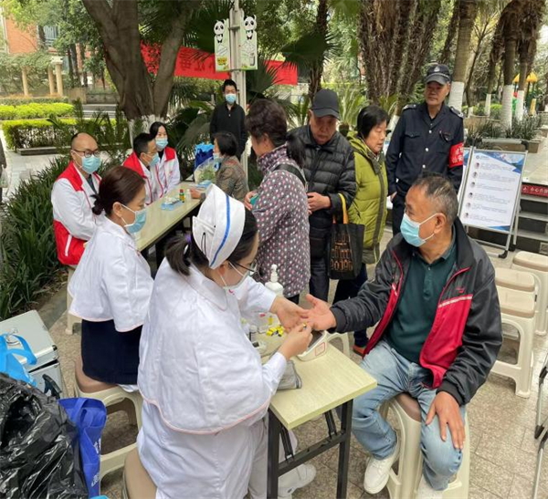 3月19日,巡诊队前往成华区东方明珠花园开展“爱老为美,助老为乐”的南丁格尔志愿者服务活动,为居民测量血压、心率、血糖,对高血压、高血糖的老年人进行饮食和运动上的健康宣教,帮助老人树立健康的生活理念。