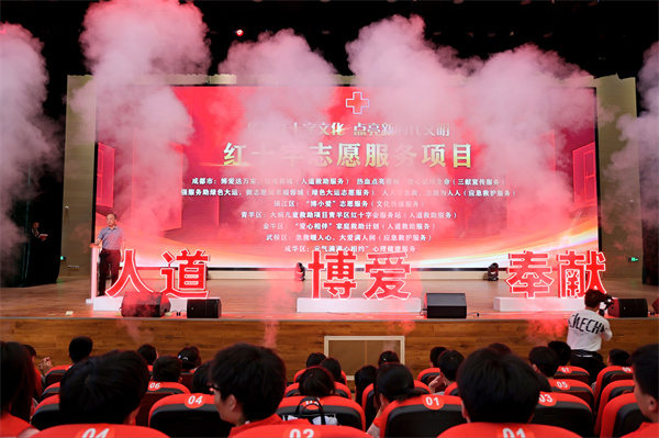 由成都市红十字会主办,成华区红十字会、成华区教育局等承办的成都市“传播红十字文化·点亮新时代文明”暨成华区红十字博爱月活动启动仪式,2023年5月6日在成都职业技术学校成功举行。旨在纪念第76个世界红十字日,弘扬“人道、博爱、奉献”红十字精神,发挥红十字会在社会主义精神文明主力军作用,助力成都市建设文明典范城市。