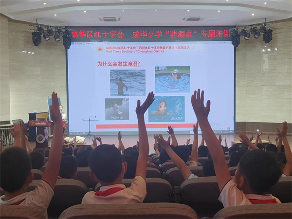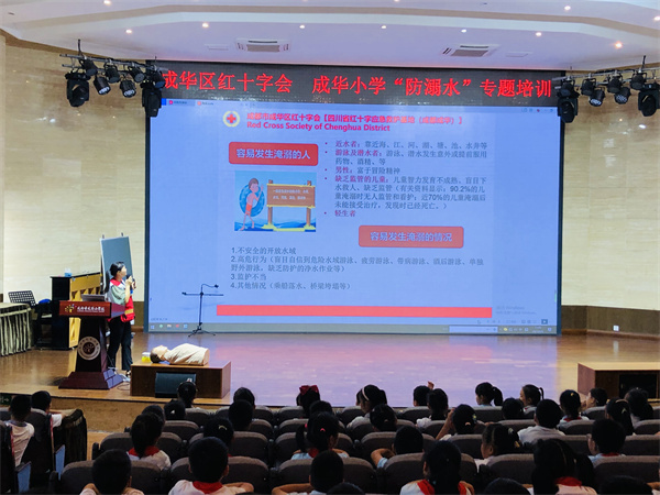 6月6日,区红十字会、区教育局在成都市成华小学开展“预防溺水·救在身边”专题培训,全校师生通过集中培训、班级视频教学的方式参加培训。