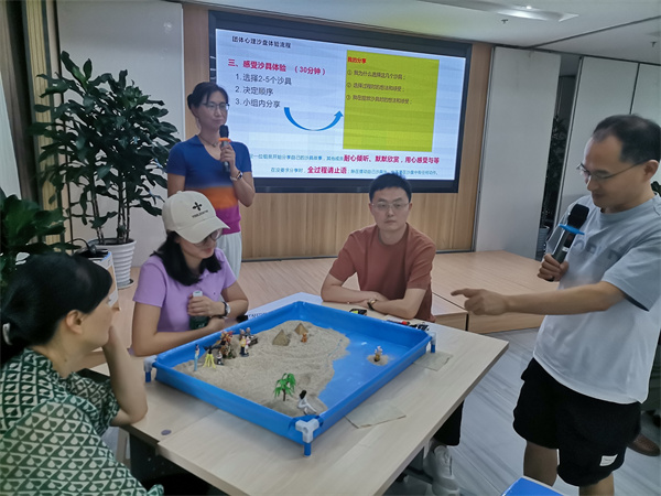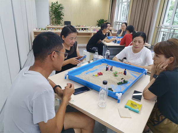 理论讲授结束后,老师带领大家学习体验结构式沙盘心理技术,通过摸沙、沙具摆放、分享等环节来释放各自情绪,强调沙盘的主要功能是治愈,是用于自我探索、自我认识、自我教育、自我成长、自我实现的。经过理论学习、沙盘互动体验,大家知道了结构式团体沙盘心理技术的十箴言“尊重、陪伴、倾听、欣赏、关爱”,志愿者纷纷表示这样的课再多一些,让更多的人来学习,对今后在自助与他助中都有很大的帮助。此外,现场还开展了防治艾滋病宣讲。