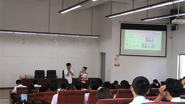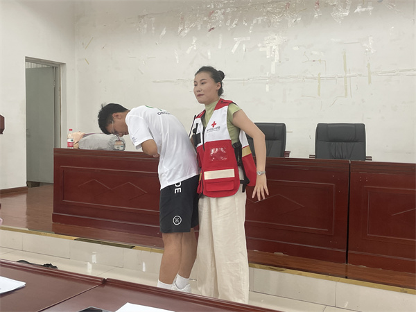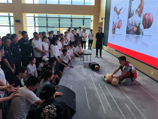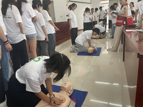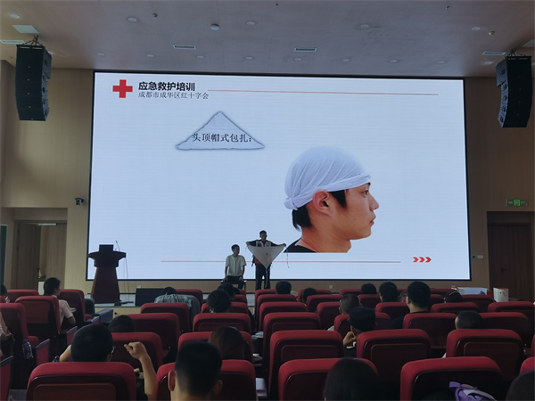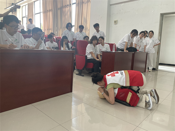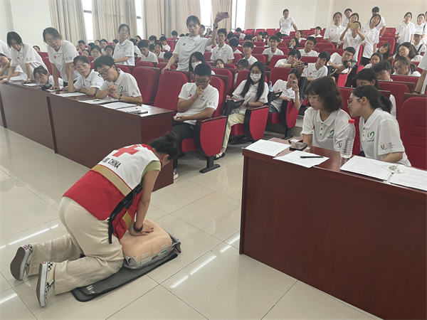 7月17日下午,在成都理工大学召开的成都大运会成华赛区城市志愿誓师大会上,区红十字会师资对参加誓师大会的180余名志愿者进行了红十字应急救护知识培训,培训重点围绕心肺复苏、AED使用、气道异物梗阻以及高温中暑等常见意外伤害处理进行。进一步提升志愿者安全意识、应急处置能力和志愿服务水平。
