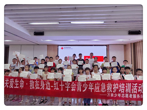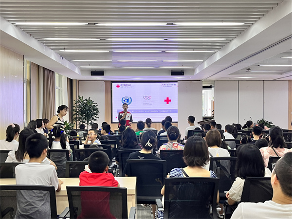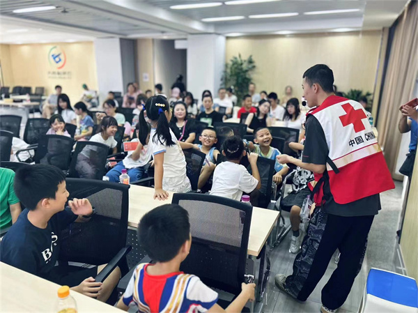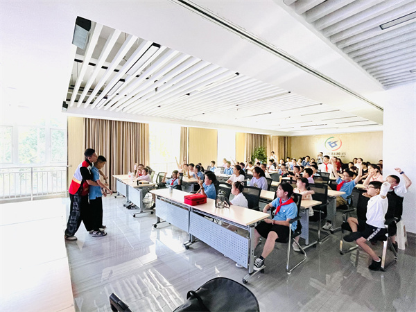 培训中,区红十字会应急救护老师向大家介绍了红十字运动的起源、发展、宗旨及精神,重点围绕高温中暑处理、预防溺水、烧烫伤处理、意外伤害事件避险自救和气道异物梗阻的正确识别及处置等内容进行了讲解,同时组织青少年在四川省红十字应急救护培训基地(成华)进行VR家庭安全、地震安全、消防安全和意外伤害情景模拟等体验,进一步加深青少年对应急救护、防灾避险知识的了解和掌握。