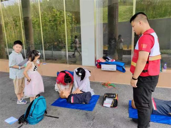 活动期间,成华区红十字会所辖——红十字水上救援队先后派出5名队员在熊猫基地进行应急救护知识宣传,并参与了景区急救保障。红十字志愿者们积极向过往游客介绍心肺复苏术、创伤包扎等急救技能,同时邀请游客们进行实操体验。