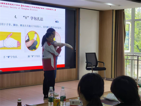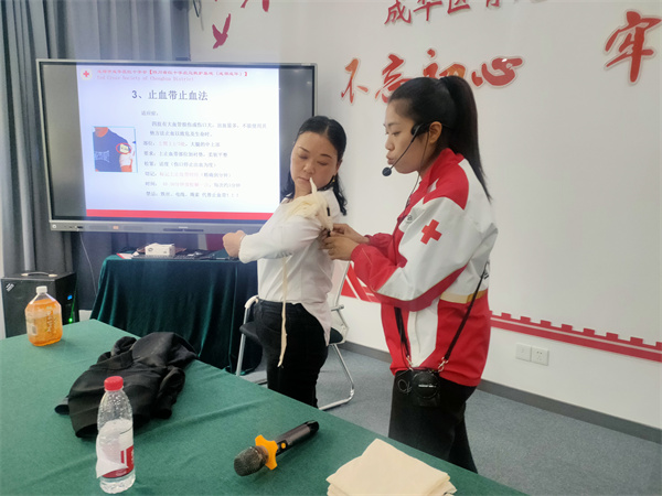 10月8日、11日、12日,分别对阳光财产保险股份有限公司四川分公司、成都汽车运输(集团)公司、青龙街道致强社区有关人员开展红十字救护员培训,培训围绕心肺复苏、创伤包扎、固定搬运、气道梗阻等知识和应对方法展开讲解,并通过实践操作帮助学员掌握急救技能,150余名参训人员均在课后通过考核获得红十字救护员证。此外,还针对火灾、地震、车祸等灾害事故进行了讲解和交流。