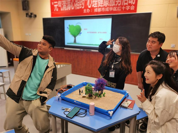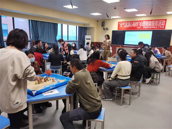 11月8日下午,成华区红十字会“元气满满心相约”心理健康服务活动走进成都职业技术学校。为高一、高二年级全体班主任老师进行了一场以”压力应对”为主题的沉浸式的心理沙盘体验活动。在授课老师的引导下,参加活动的老师积极参与,认真倾听与陪伴,别有“新”意的心理疏导活动让每一位都收获了一份舒适与愉悦。