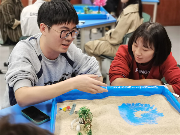 活动中,老师们释放了平日工作里的负能量,让其随着“握不住的沙”流逝;同时,用摆放各种沙具的形式,构建自己心中的愿景。老师们在工作之余,通过这样的活动交流沟通、舒缓压力,体验美好享受。沙里淘“精”,是疲累后淘出精力,是生活里显出精致,是讲台上育人精心!
