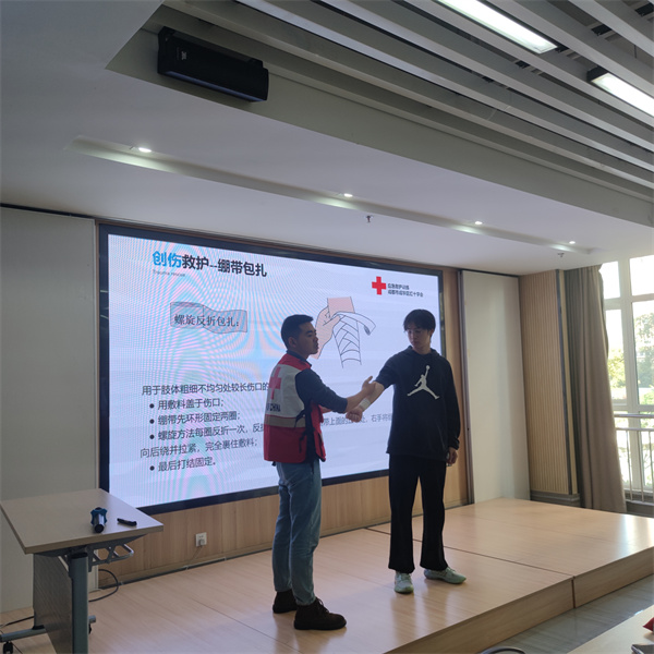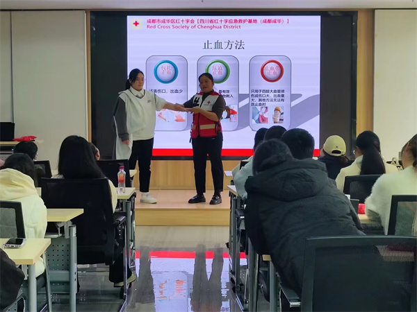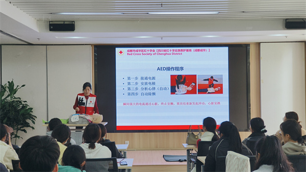 为进一步贯彻落实全省高校红十字工作交流会精神,11月以来,成华区红十字会先后深入四川师范大学、电子科技大学成都学院、成都理工大学、西南财经大学天府学院等高校开展红十字救护员培训近20场,围绕心肺复苏、创伤包扎、固定搬运、气道梗阻、常见急症等知识和应对方法展开讲解,并通过一对一实际操作练习,帮助学员掌握急救技能。1000余名高校师生参加培训并获得红十字救护员证,进一步提高了学校师生公共安全意识,增强了应对突发意外伤害事件时的自救互救能力,巩固了高校应急救护网络服务体系的建设。