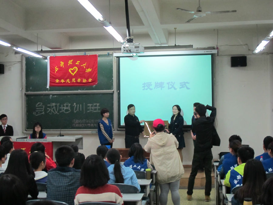 4月12日,成都市成华区红十字会联合成都理工大学青年志愿者协会成立了我区首个大学生志愿者急救员培训基地,成华区红十字会副会长梁超同志、成都理工大学校团委副书记李燮同志出席了授牌仪式并作了重要讲话。其后又举行了成都理工大学青年志愿者协会急救员培训班的开班仪式。仪式后来自成都理工大学青年志愿者协会的120余名志愿者报名参加了急救员培训班,届时将为考核合格的志愿者颁发初级急救员证书。该基地将定期开设急救员培训班,长期针对大学生进行急救培训。