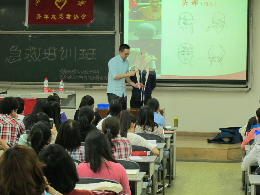 区红十字会将通过培训提高大学生的自救和互救的能力,同时将以成都理工大学急救员培训基地这个平台,以点带面推动全区的急救员培训工作。