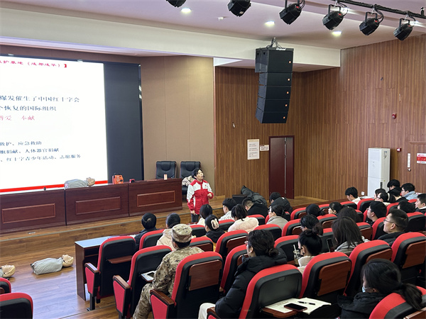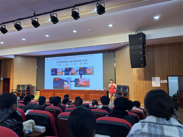 1月15日,在成都职业技术学校开展教职工专项救护员培训。培训围绕红十字文化、心肺复苏和AED使用、气道梗阻、创伤包扎、固定搬运等知识和应对方法进行,同时通过实操练习进一步帮助学校老师们掌握急救技能。40余名学校老师通过考核并获得救护员证。