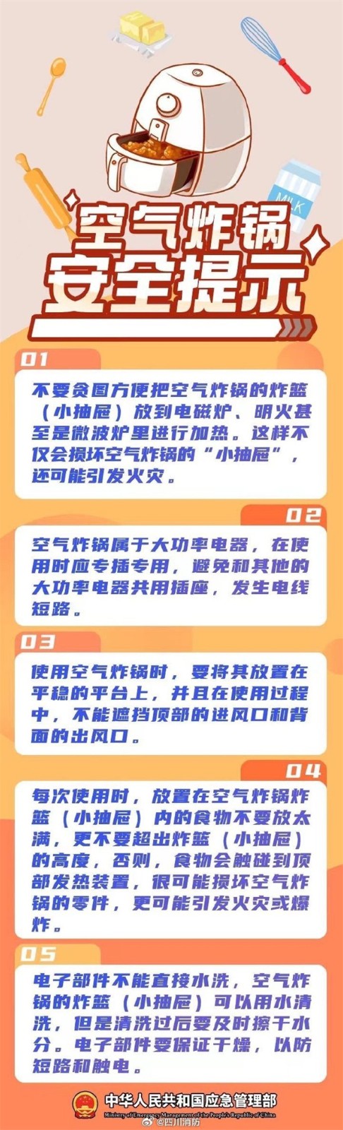 空气炸锅、微波炉、烤箱……这些厨房电器极大地方便了人们的生活,但是如果使用不当,也会引发事故。哪些物品不能放进空气炸锅或微波炉加热?烤箱在使用中哪些地方不能触碰?戳图了解↓↓