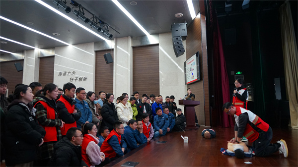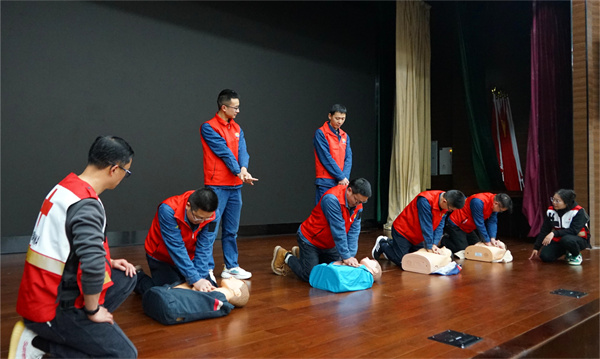培训通过理论讲授、现场演示和实操训练等方式进行,区红十字会应急救护老师向学员们详细讲解了应急救护“黄金四分钟”、心肺复苏、外伤急救、气道异物梗阻等急救技能,强调了学习心肺复苏术的重要性,现场演示了胸外心脏按压、人工呼吸等心肺复苏操作流程。