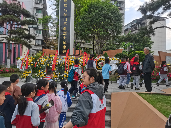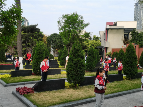 为缅怀革命先烈的丰功伟绩,弘扬先烈的革命精神,教育和引导广大青少年以实际行动践行社会主义核心价值观,西林社区红十字会组织辖区青少年在成都马鞍山烈士陵园开展了“翠柏青松伴英烈,清明祭扫祭忠思”—清明烈士陵园扫墓志愿服务活动。活动中,全体青少年庄严肃穆的在烈士墓碑前默哀三分钟,依次为烈士们送上菊花,致以崇高的敬意。红十字志愿者带领青少年们在烈士纪念碑下献词,带领同学们深入了解革命烈士不畏牺牲、宁死不屈的英勇事迹,同时勉励同学们要继承英烈遗志,弘扬英烈精神,要好好学习,树立远大理想,为实现中华民族伟大复兴而不懈奋斗。