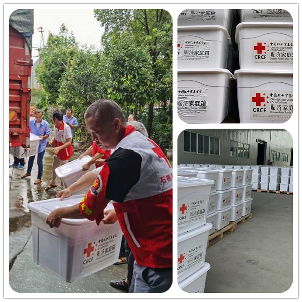 由于灾情紧急,家庭箱内物资还未组装,15日,省红十字会派出机关工作人员及省红十字赈济救援队队员共18人,参与赈济家庭箱组装与运输工作。为尽快让救灾物资送往灾区一线,中国红十字基金会、省红十字会及赈济救援队一起,克服高湿天气,高效快捷地完成了赈济家庭箱组装。16日下午,这批家庭箱已送达灾区一线群众手中。