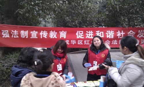 围绕“弘扬宪法精神,服务科学发展”的主题,成华区红十字会组织普法志愿者,开展面向市民的宣传活动,引起了市民的广泛关注。在宣传的同时向周围的商户和社区居民及行人等分发《中国红十字法律知识汇编》50本,《急救知识读本》100本。受到了市民的一致欢迎。
