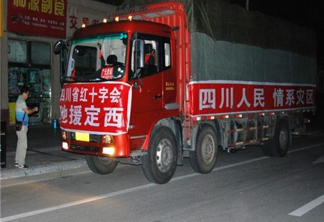 7月22日7:45时,甘肃定西6.6级地震发生后,正在总会开会的四川省红十字会赵万华常务副会长明确指示,四川省红十字会在开展本省暴雨洪灾救灾工作的同时,要紧急行动把最需要的应急救援物资送到定西地震灾区。根据赵万华常务副会长安排,当天下午,四川省红十字会已就近将事先储备在广元备灾仓库价值51.6万元的400个家庭包、230顶帐篷装车启运,委派专人连夜运送甘肃省定西地震灾区,以解灾区燃眉之急。