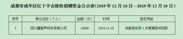 成都市成华区红十字会接收捐赠资金公示表(2019年12月10日—2019年12月10日)