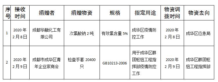 成都市成华区红十字会捐赠物资接收和使用情况公示表