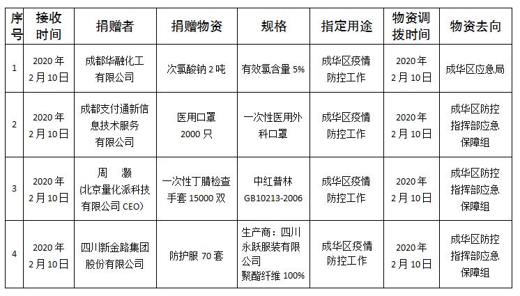成都市成华区红十字会捐赠物资接收和使用情况公示表