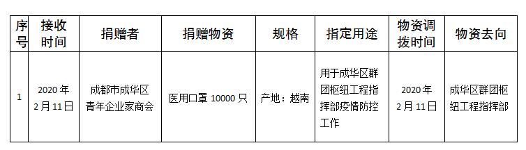 成都市成华区红十字会捐赠物资接收和使用情况公示表(2020年2月11日)