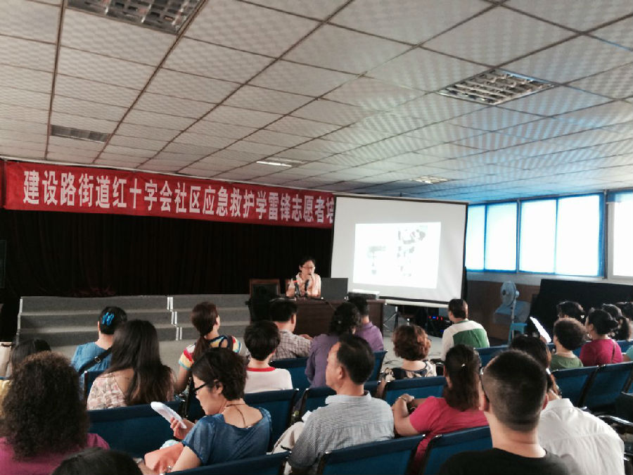 2014年6月23日上午9:30在建兴路社区会议室举办,廖老师用生动通俗的语言,向社区居民志愿者讲解了在人们的日常生活当中,志愿者们应具备的一些简单实用的救护知识和技能,强调指出:在生命救助的黄金时间4到30分钟,在这段时间内,能否以适当的工具,正确的方法进行急救是能否挽救生命的关键,如果大家具备的一些简单实用的救护知识和技能,就能够迅速、及时、有效地帮助他人或自救,从而减轻伤害,挽救生命。
