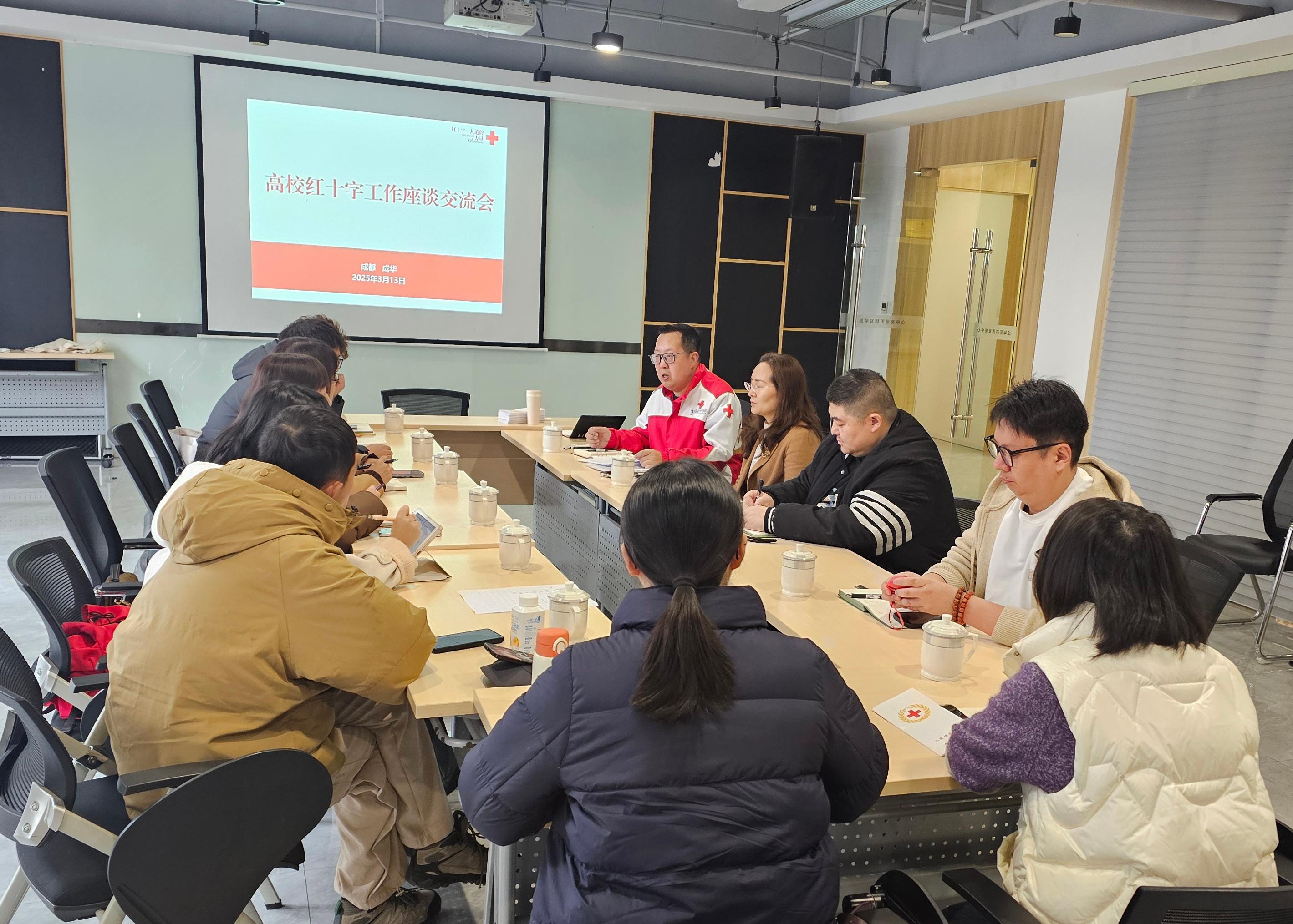 为进一步落实上级红会关于高校红十字会“兴会强会”相关要求,3月13日上午,成华区红十字会组织辖区高校开展红十字工作交流会,电子科技大学、成都理工大学、西南财大天府学院三所高校红十字会相关负责人参加,共同探讨交流高校红十字会和驻地红十字会相关工作、业务发展新路径。