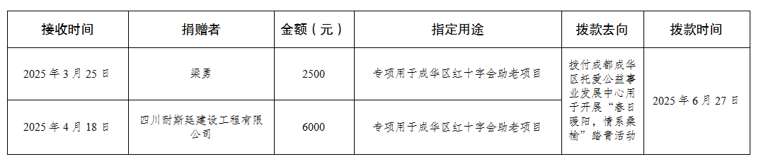 成都市成华区红十字会接受和支出捐赠资金公示表