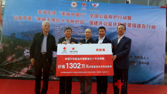 据悉,中国红基会幸福天使基金“美丽中国行”福建行动向福建省红十字会捐赠价值1302万元的款物,用于在泰宁国家级风景名胜区金湖景区、屏南白水洋风景区、太姥山风景名胜区、福建土楼(南靖)旅游景区、泉州清源山风景名胜区、武夷山市国家级别风景名胜区6家5A级景区,以及莆田湄州岛国家旅游度假区、平潭龙凤头海滨浴场2家4A级景区援建8所“幸福天使红十字救护站”,为福建省培训1000名景区应急救护人员,为1300名贫困家庭新生儿提供免费先天性重大疾病筛查,以及开展扶贫计划等活动。