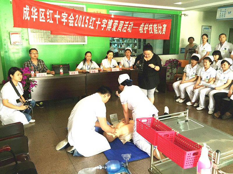 二是在5月7日,区红十字会联合区六医院在六医院院内举办了一次医护人员院前应急救护技能大赛,由区红会应急救护师资和六医院副院长及技术部门负责人任评委,院内40余人参加,提高了参与者院前救护的规范性和熟练度;