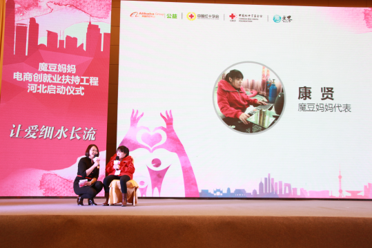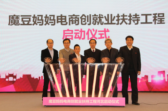 2017年11月23日,由阿里巴巴公益和中国红十字会∙淘宝公益基金主办的“魔豆妈妈”电商创就业扶持工程河北站在石家庄市正式启动。中国红十字会副会长王汝鹏、河北省政府副秘书长李璞、阿里巴巴集团合伙人孙利军、中国红十字基金会常务副理事长兼秘书长孙硕鹏、无界控股有限公司董事长王君出席启动仪式。河北省红十字会、省扶贫办、省妇联、省残联、共青团河北省委、省人社厅、省商务厅、省民政厅等有关省直部门与优秀“魔豆妈妈”代表共200多人共同见证了项目的启动。