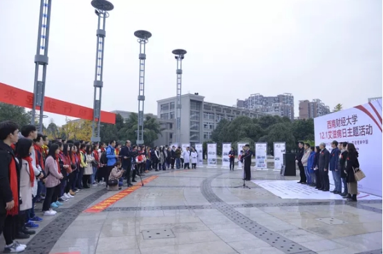 12月1日,“红十字·红丝带”生命关爱进校园防艾主题宣传活动在西南财经大学柳林校区举行。