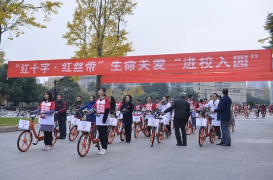 活动现场,西南财经大学红十字会的志愿者通过自制宣传视频,宣传展架,发放宣传资料等方式开展艾滋病防治宣传教育。活动最后,嘉宾与防艾志愿者在校内进行防艾宣传骑游活动,进行防艾宣传。