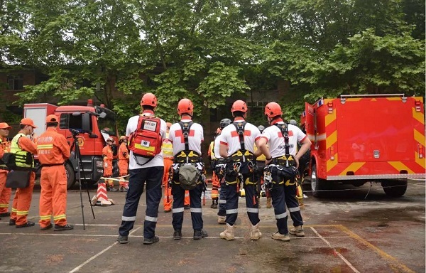 5月25日下午接到指令后,三支红十字救援队共32人分别从成都和南充出发前往位于雅安天全县的省消防救援总队前方指挥部报到,接受任务配合消防官兵开展救援工作,全程参与破拆、转移、支撑、救助等相关科目的演练中。